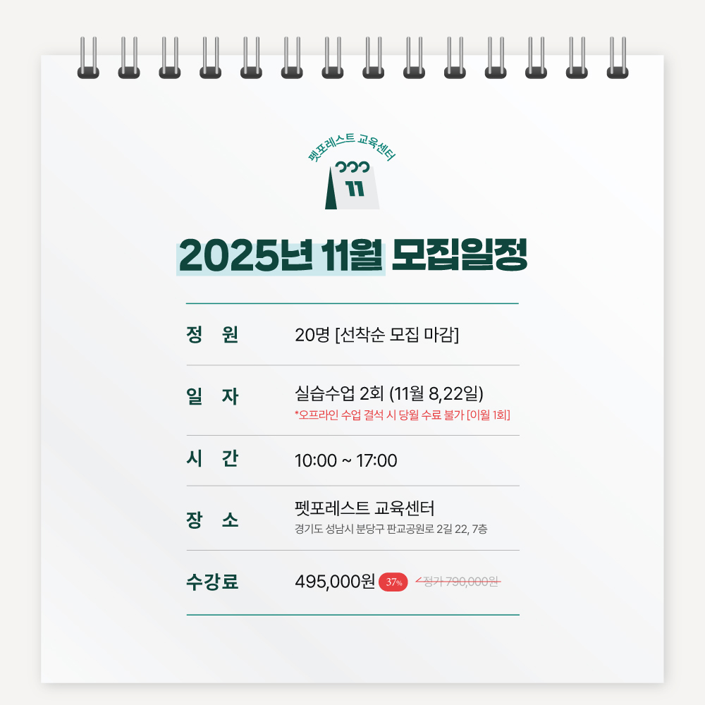 펫포레스트 교육센터 2025 11월 연말 프로모션❄️ | 최고관리자 / 2025.10.10 | |