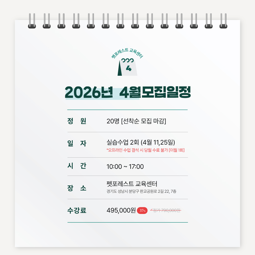 | 펫포레스트 교육센터 2026 4월 프로모션🌸 | 최고관리자 / 2026.02.26 | |